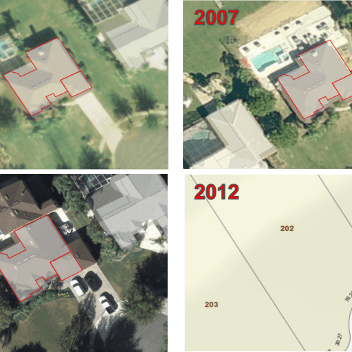 ← Previous Image Next Image → Building sketch overlays Not only can you detect changes using aerial imagery, but also, with a little bit of effort you can validate the accuracy of your sketches and find missing additions, as seen in the example above.